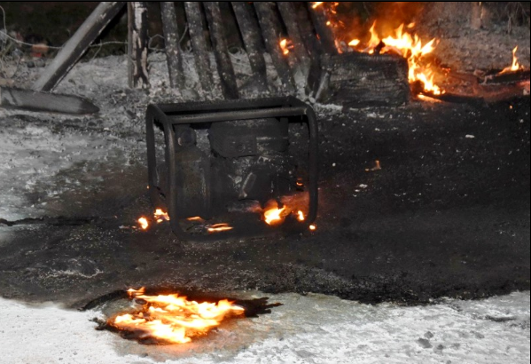 En un momento dado, por un inconveniente en la motobomba, se produjo una explosión e incendio que alcanzó al operario de la actividad clandestina, provocándole lesiones.