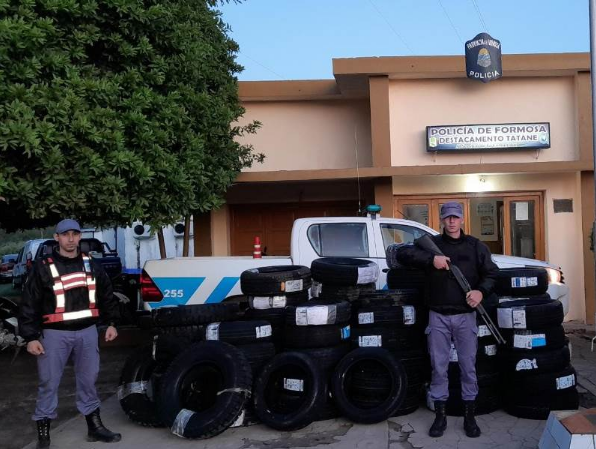 Efectivos de la fuerza provincial secuestraron un camión sobre la Ruta Nacional N° 11, en el empalme con la Ruta Provincial N° 1, por transportar 64 cubiertas nuevas, sin aval aduanero e iniciaron actuaciones por Infracción al Código Aduanero, con intervención de la Dirección General de Aduanas, Delegación Formosa.