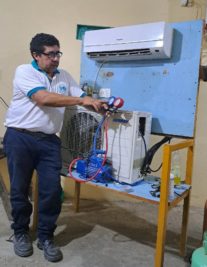Luego, consultado sobre el curso, comentó que trata sobre el mantenimiento de aires acondicionados, heladeras y freezers. “El curso se basa en enseñarles de forma teórica, pero más se trata de realizar mucha práctica, como por ejemplo soldar, cargar componentes y gas, desarmar para realizar la limpieza del equipo, entre otros”,