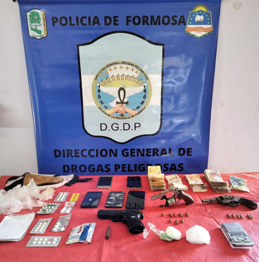 Un espacio de venta de estupefacientes anulado en el barrio La Nueva Formosa. se procedió al secuestro de armas de fuego y de cocaína apta para la fracción aproximada de 230 dosis.
