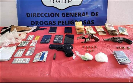 La requisa domiciliaria se concretó durante la mañana del jueves último y estuvo a cargo de efectivos antinarcóticos, con la colaboración de integrantes del Grupo de Intervenciones Especiales, donde concretaron la detención de una mujer de 38 años y secuestraron cocaína apta para la elaboración de 288 dosis, una balanza digital, más de 112.000 pesos, elementos para estiramiento y acondicionamiento de la droga, equipo de celular, agendas con anotaciones y dos revólveres calibre 22 milímetros y una pistola.