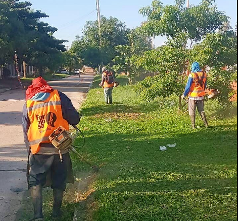Cuadrillas comunales junto a cooperativistas, hicieron lo propio en espacios perimetrales de escuelas, capillas, comisarías, centros de salud, plazas y playones deportivos de los barrios Monteagudo, República Argentina, San Pedro, San Martín (centro), Namqom, Lote 33 y en plazoletas de las avenidas Sgto. Cabral, Los Gobernadores y Néstor Kirchner.