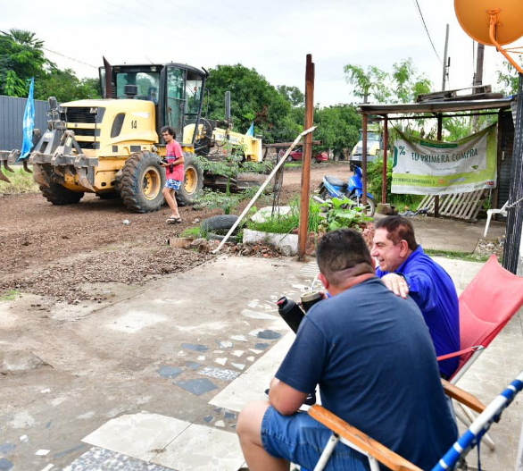 El intendente Jofré recorrió el B° San Juan I donde dialogó con vecinos y supervisó tareas de ripio