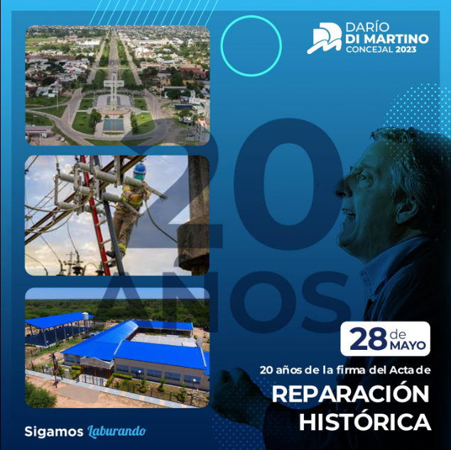 Hoy se cumplen 20 años desde aquel 28 de Mayo de 2003, en donde el entonces Presidente de la Nación Néstor Kirchner, 3 días después de haber asumido, junto al Gobernador Gildo Insfrán firmaron el acta de reparación histórica para la Provincia de Formosa, lo transcendental de este acto, transformó no solo el destino de la provincia sino la vida de todos los formoseños y formoseñas.