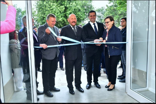 En primer término, el primer mandatario provincial cortó las cintas para dejar habilitadas las obras del Salón Municipal y luego la pavimentación de cuatro cuadras, desagües e iluminación en Avenida San Martín y Almirante Brown.