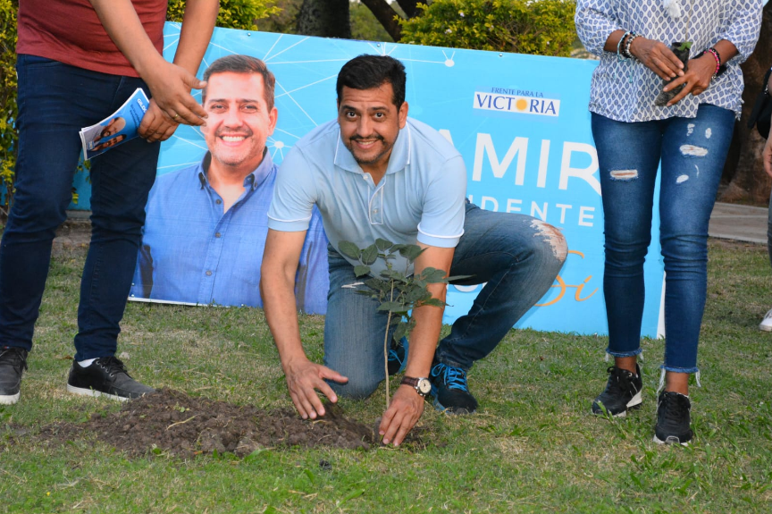 El candidato a intendente de la Ciudad de Formosa, Ramiro Fernández Patri, presentó su plan de forestación masiva, lo hizo en la tarde del domingo en el Paraíso de los Niños, donde acompañado de la Ministra Sec. Gral. Cecilia Guardia Mendonca y un nutrido grupo de militantes, plantó de forma simbólica el primer árbol de los 300.000 árboles que propone plantar en su gestión. Además, entregó plantines a las familias que disfrutaban la tarde en el lugar.