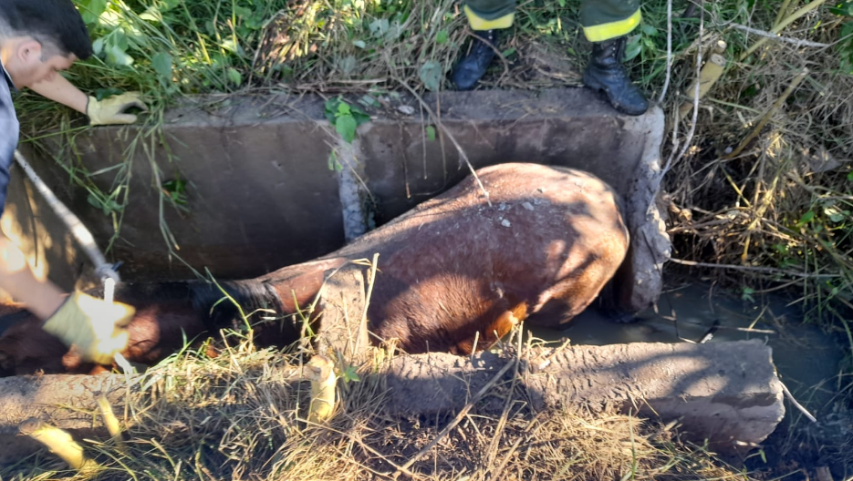 Efectivos rescataron a un caballo que cayó en una cámara séptica
