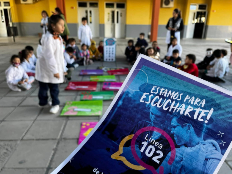 Mediante talleres y actividades lúdicas, el equipo de profesionales que integran la Línea 102 da a conocer este servicio telefónico gratuito al que pueden contactar chicos y chicas para plantear inquietudes o situaciones que vulneren sus derechos.