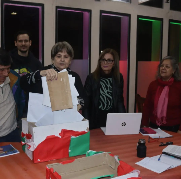 Epígrafe: integrantes del Taller literario abren la urna con los trabajos entregados
