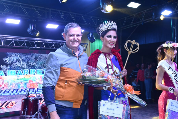 Adán Jarzynski, intendente de la localidad de Ibarreta coronó este martes por la noche a Marcela Antonia Pérez, de 20 años de edad, representante de Agrupaciones Gauchas como soberana de la localidad que celebró 102 años de fundación.