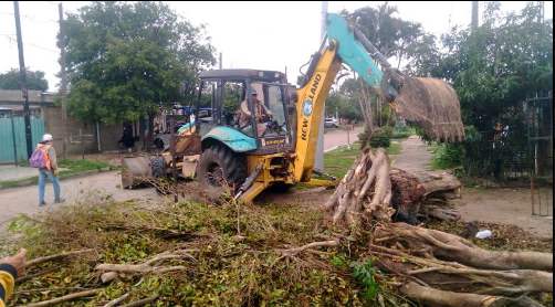 De este modo, durante la inestable jornada del miércoles, grandes cantidades de desechos voluminosos como trancos, ramas, escombros y chatarras fueron recolectados por numerosos equipos de trabajo que, utilizando camiones y máquinas, intervinieron en los siguientes conglomerados: Cono Sur, Sagrado Corazón, Urbanización España, 25 de Mayo, El Quebrachito, Guadalupe, Obrero