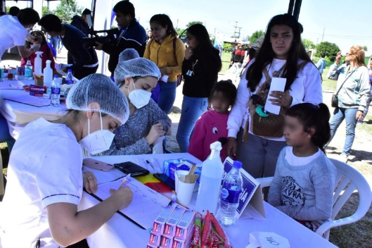 Este sábado 29, a partir de un trabajo articulado con el Ministerio de Desarrollo Humano, equipos de salud realizaron un operativo donde se brindaron diferentes atenciones médicas a los niños y niñas y familias del barrio Lote 110. Más precisamente en la cancha del club San Jorge se desarrolló la actividad en horario matutino.