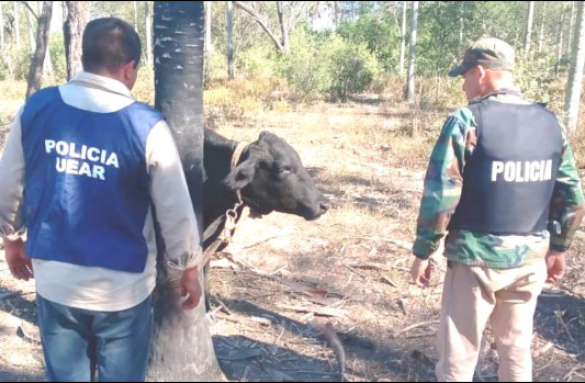 Todo comenzó con la denuncia de un ganadero de la localidad de Posta San Martín Uno, quien comentó la sustracción de un animal vacuno ocurrido en la madrugada del lunes, hallando huellas de un mular utilizado para la consumación del hecho.