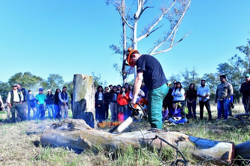 En el marco del Día del Ingeniero Forestal Argentino, que se celebra cada 16 de agosto, el Ministerio de Producción y Ambiente desarrolló una capacitación del manejo de motosierra, donde se aplicaron técnicas de apeo, desrame y tableado de árboles en pie, con esa herramienta.