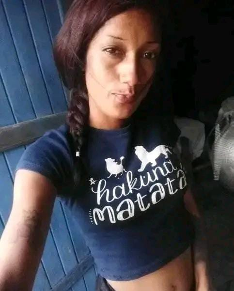 La mujer es de contextura física delgada, mide 1,65 metros aproximadamente de estatura, cutis morocho, cabello largo pelirrojo, ojos marrones, con tatuajes en ambos brazos y en la pierna derecha.