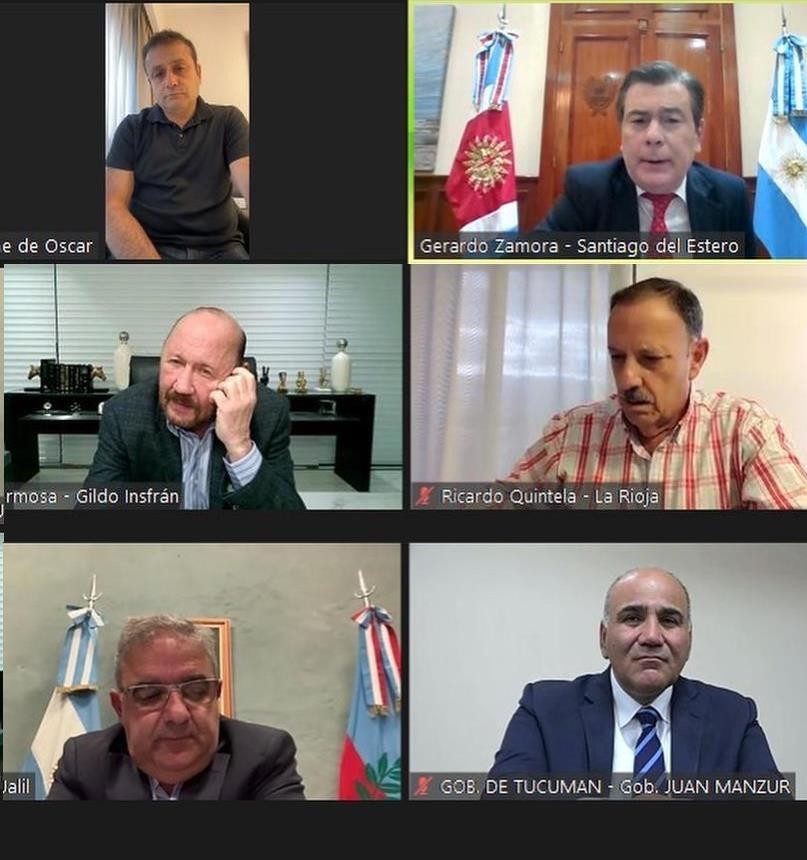 La reunión fue vía Zoom y participaron Raúl Jalil (Catamarca); Jorge Capitanich (Chaco); Gustavo Valdés (Corrientes); Juan Manzur (Tucumán); Gerardo Morales (Jujuy); Ricardo Quintela (La Rioja); Oscar Herrera Ahuad (Misiones); Gustavo Sáenz (Salta) y Gerardo Zamora (Santiago del Estero).