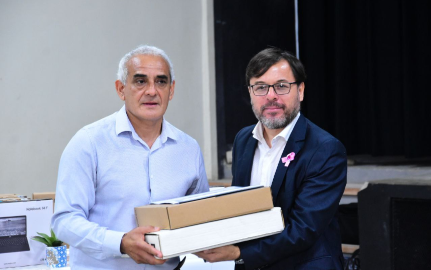 Precisó que incluye computadoras, impresoras y drones, destinadas a las instituciones a través del Plan Mejora, aclarando que todos los institutos de la provincia lo recibieron.