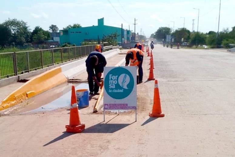 Durante la jornada del martes, equipos de trabajo de la Subsecretaría de Transporte y Emergencia del municipio capitalino desarrollaron acciones de señalización en un tramo de la avenida Néstor Kirchner, en la zona del puente ubicado sobre el riacho El Pucú.