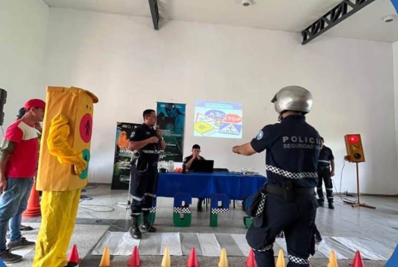 La actividad se desarrolló el viernes último en horas de la mañana y se abordaron temas vinculados al uso correcto de la senda peatonal, utilización de casco protector, uso correcto de semáforos y señales de tránsito.