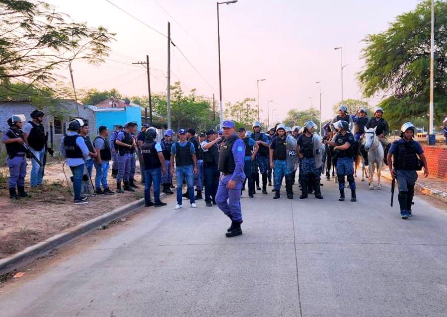 Ante el desorden rápidamente acudieron al lugar personal del Destacamento Desplazamiento Rápido (DDR) quienes repelieron el ataque con disparos de escopeta con posta de gomas, de cuyo enfrentamiento resultaron lesionados de carácter leve dos efectivos policiales y un móvil de la institución dañado.