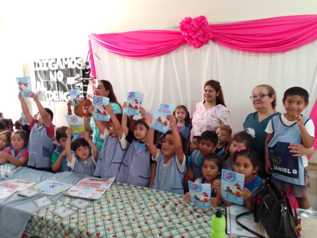 Durante el desarrollo, los profesionales mostraron a las niñas y niños las características físicas que tiene el mosquito que transmite el dengue, para que puedan identificarlo. Y le contaron que es el mismo mosquito que transmite también la fiebre chikungunya y el zika y que, por ese motivo, es muy importante combatirlo.