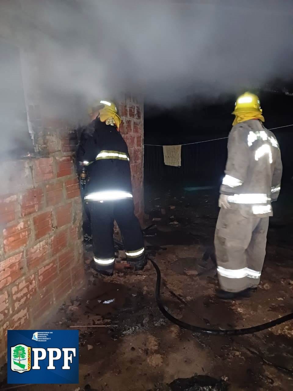 El hecho ocurrió en la madrugada de este lunes, cuando personal de la unidad operativa jurisdiccional y una dotación del Destacamento de Bomberos de Laguna Blanca acudieron a extinguir un incendio de vivienda en la calle Juan Fernández y Pasaje del barrio Itatí de la referida localidad.