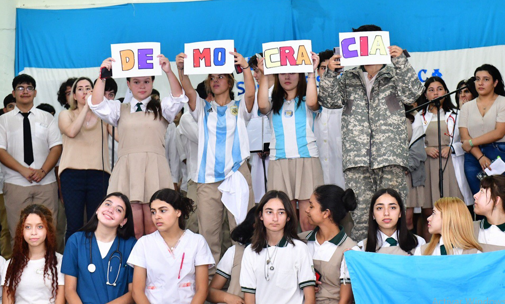 “La temática utilizada estuvo referida a los 40 años de democracia, con el fin de mantener viva la memoria”, explicó la docente.