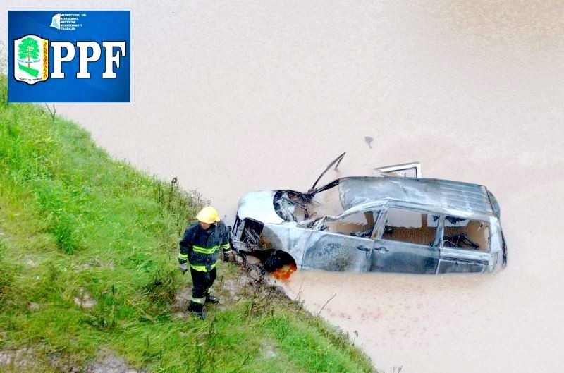 Una vez en el lugar el personal verificó que el rodado tipo familiar, finalizó su recorrido en el canal del citado cauce de agua, produciéndose el incendio del vehículo, el cual no pudo ser identificado hasta el momento, ya que la parte superior fue consumido por el fuego, y el resto se encontraba sumergido en el agua.