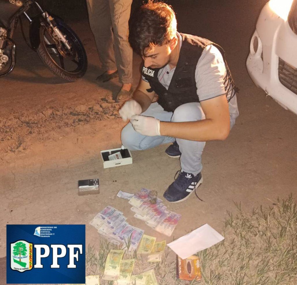 Durante tareas investigativas, la Policía detuvo a dos hombres en Pirané y secuestró varios gramos de marihuana, dos teléfonos celulares, dinero y la motocicleta en la cual se desplazaban para comercializar estupefacientes.