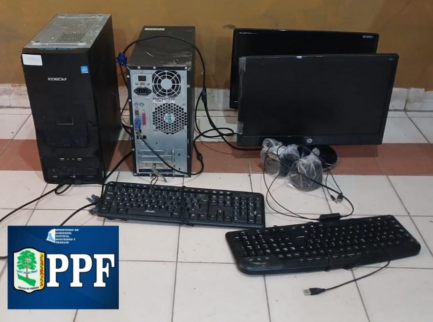 Tras una amplia labor investigativa, efectivos policiales recuperaron dos monitores, con sus respectivos CPU, teclados y mouse, sustraídos de un establecimiento educativo del barrio Eva Perón de esta ciudad.