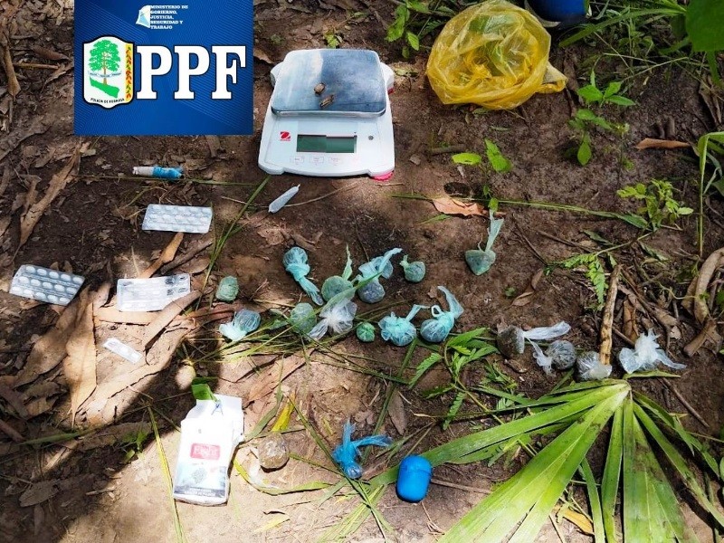 Un hombre denunció el robo de un parlante en la Colonia La Primavera y la Policía investigó el hecho, detuvo a cuatro jóvenes y encontró entre sus prendas de vestir unos 16 bagullos de marihuana, una pipa, un cuchillo y dinero, todo puesto a disposición de la Justicia.