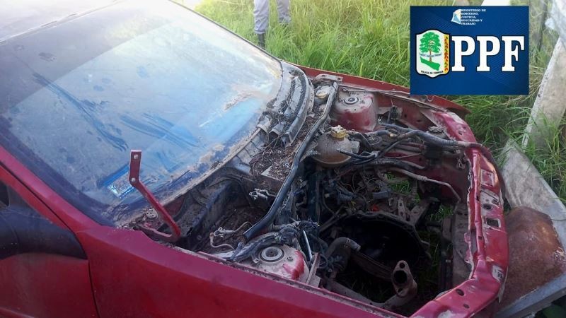 Efectivos de la Subcomisaría Lote 111 y la Brigada de Investigaciones, llevaron adelante la requisa domiciliaria, obteniendo como resultado el secuestro del vehículo que se encontraba en el patio posterior, a cuyo rodado ya le habían sacado las cuatro ruedas, el capot, el motor, radiador, faros delanteros y parte del chasis se encontraba seccionado.