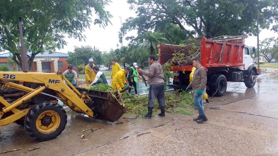 Todo el personal de la Municipalidad se abocó incansablemente al retiro de una gran cantidad de árboles y ramas que obstruían las vías de circulación, la limpieza de bocas de tormenta y canales de desagües y la asistencia a los vecinos que lo requirieron, en tanto que los equipos de trabajo de REFSA se ocuparon de solucionar los inconvenientes por la caída del tendido eléctrico.