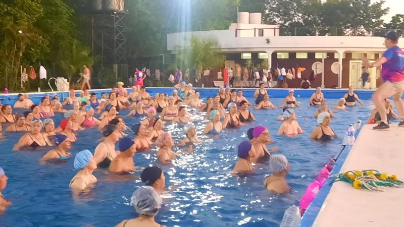 Este lunes 15 a las 20 horas, dio inicio a la segunda semana de ejercicios en el agua, aquagym, que tiene lugar en el complejo del “Paraíso de los niños”.