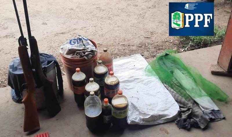También secuestraron una escopeta calibre 28, un aire comprimido, varios cartuchos calibre 16 y 28, como así baldes y botellas conteniendo un total de 62 litros miel de abeja.