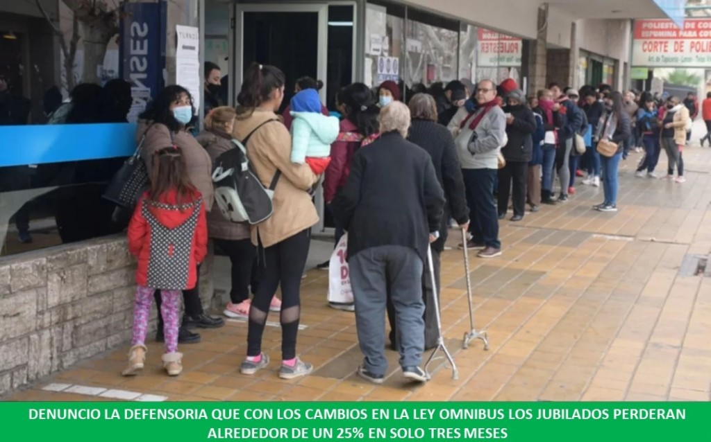 Denunció la Defensoría que con los cabmios en la ley ómnibus los jubilados perderán alrededor de un 25% en solo tres meses