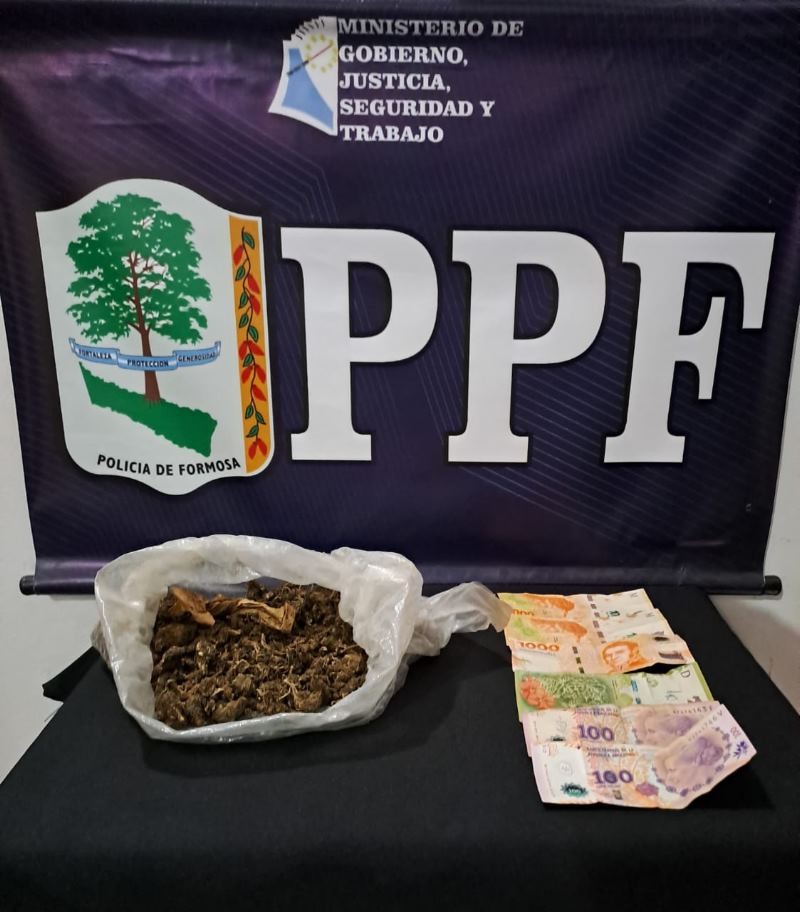 Mientras efectivos de la fuerza provincial recorrían la Ruta Nacional 81, demoraron a un adolescente que tenía una mochila con varios gramos de marihuana y dinero.