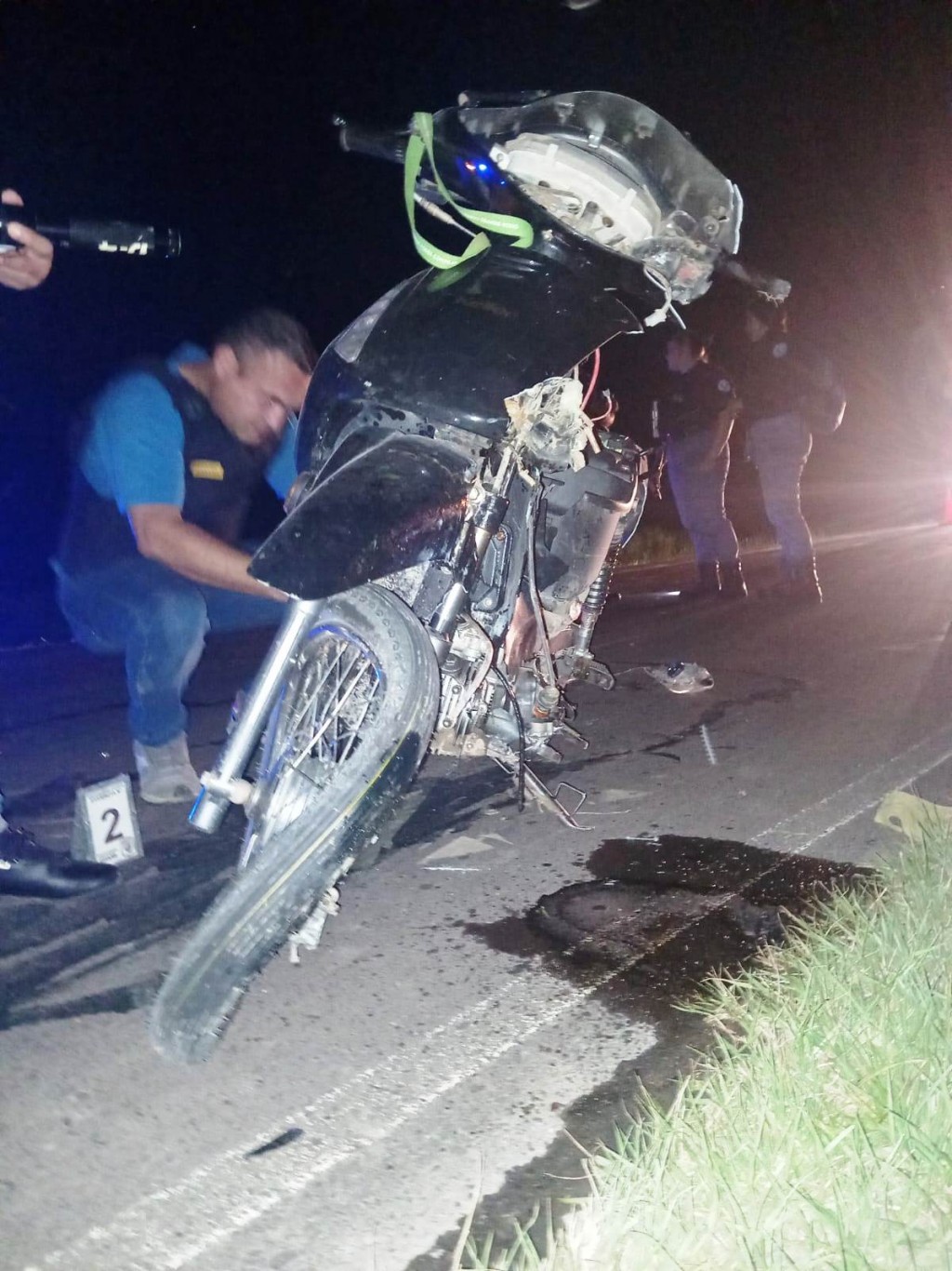 A pocos metros observaron una motocicleta Keller de 110 cilindradas, con daños en su estructura, y un camión Volkswagen que sería el otro protagonista del siniestro.
