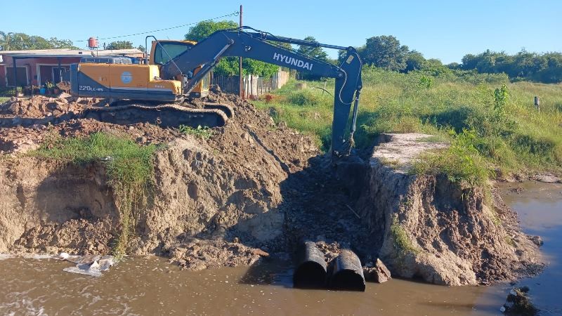 Finalmente, cobro continuidad la limpieza mecánica en los canales centrales de los barrios Municipal y 20 de Julio, sobre el camino que se dirige a Mojón de Fierro.