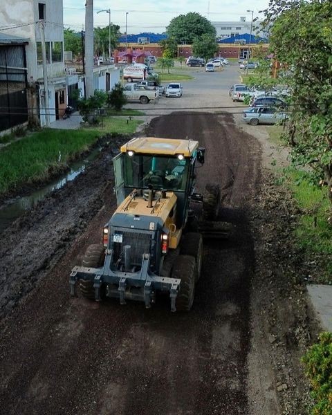 Tareas de ripio, perfilado y compactación de calles en el B° San Pedro y Virgen del Rosario.