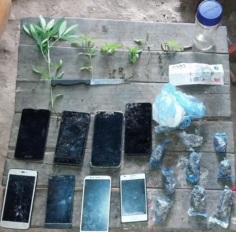 De una de las viviendas se secuestraron envoltorios y siete plantines de marihuana, ocho teléfonos celulares, cuchillos, cartuchos y detuvieron a un sujeto de 24 años.