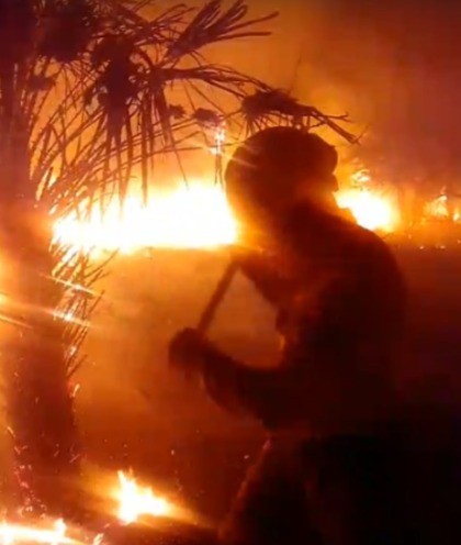 Este domingo, minutos antes de las 22:00 horas, recepcionaron un llamado a la línea de emergencias gratuita 911, que alertó del siniestro en el ingreso a la colonia San Hilario propagado rápidamente hacia un lote con 400 cabezas de ganado vacuno y solicitó personal de Bomberos.