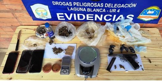 Integrantes de la Delegación de Drogas Peligrosas de Laguna Blanca allanaron una vivienda del barrio San Francisco Solano de la localidad de Misión Tacaaglé, detuvieron a un sujeto y secuestraron drogas, un arma de fuego y cartuchos.