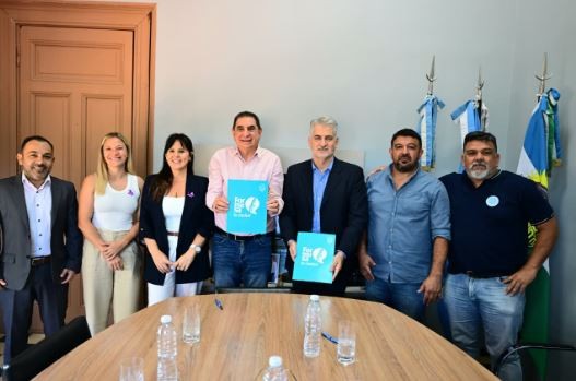 Participaron de la firma del convenio la secretaria de Acción Social, Paula Cattáneo; el procurador General, Dr. Fernando Rigotti; la coordinadora del Equipo Interdisciplinario, Mayra Retamoso; el secretario general del Sindicato Único de Trabajadores Municipales, Ariel Peralta y Pablo Cesar Mora, secretario gremial del sindicato.
