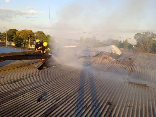 En forma rápida, una dotación de Bomberos del Destacamento Pirané realizó el corte del suministro eléctrico y el desprendimiento de chapas para atacar las llamas en forma directa.