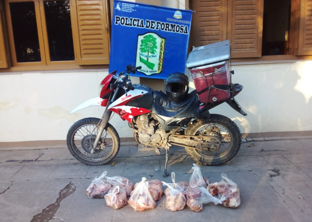 Durante trabajos preventivos realizados por efectivos de la Policia provincial detectaron a un hombre que trasladaba carne vacuna en una motocicleta por calle Tomas Rojas y Mitre de El Colorado, sin contar con equipo de refrigeración obligatorio para la actividad, además de otras disposiciones vigentes.