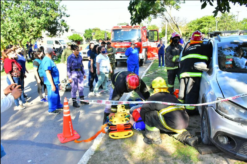 En cuanto a la simulación llevada a cabo, explicó que en principio actuaron los bomberos al asistir a un accidente de tránsito de un vehículo con víctimas múltiples, quienes dan seguridad a la escena para el acceso del personal de salud y retiran a las víctimas. Luego la escena se trasladó al puesto médico de avanzada, donde interviene el personal sanitario que catalogan a las víctimas según el grado de urgencia y necesidad de ser trasladadas. La tercera es el traslado de la víctima más complicada en una unidad de traslado de terapia intensiva.