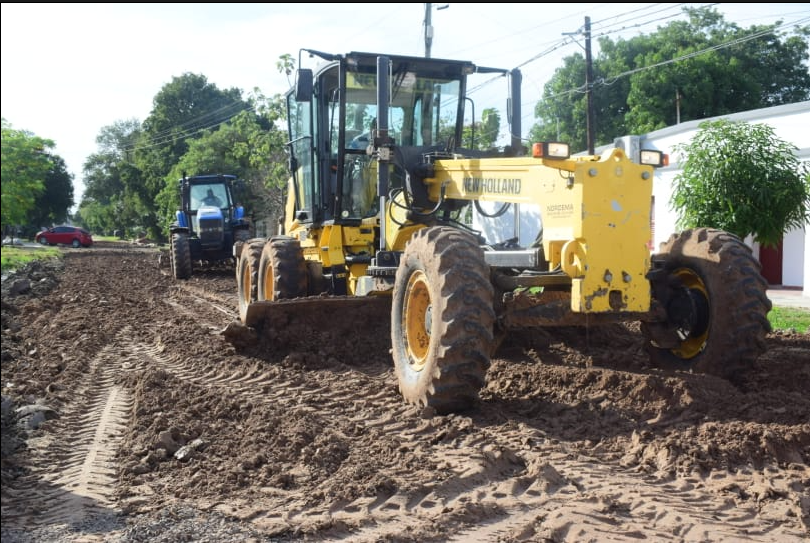 Operarios al mando de motoniveladoras, llevaron a cabo el perfilado y carga de suelo en calles de los barrios Mariano Moreno y Virgen del Rosario, en este último precisamente sobre la Santa María de Oro y José M. Uriburu, con compactación de suelo, trabajo que se complementó con la recolección de residuos voluminosos.