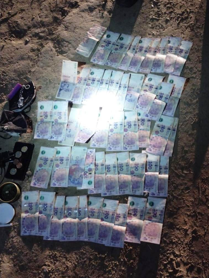 Allí, procedieron a su identificación y en presencia de testigos hábiles se le realizó el cacheo preventivo de seguridad hallándose entre sus prendas de vestir el dinero que contenía el denunciante en el interior de la cartera, y además varios gramos de sustancia vegetal similar a marihuana.