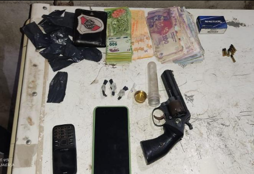En el lugar, se procedió a la detención de un hombre de 50 años y se secuestraron   cuatro envoltorios de nylon conteniendo cocaína fraccionado en dosis para su comercialización, varios envoltorios de nylon utilizados para el almacenamiento de la sustancia, dinero, dos teléfonos celulares, un arma de fuego calibre 22 que tenía seis cartuchos en sus alveolos y 26 cartuchos del mismo calibre, entre otros elementos de interés.